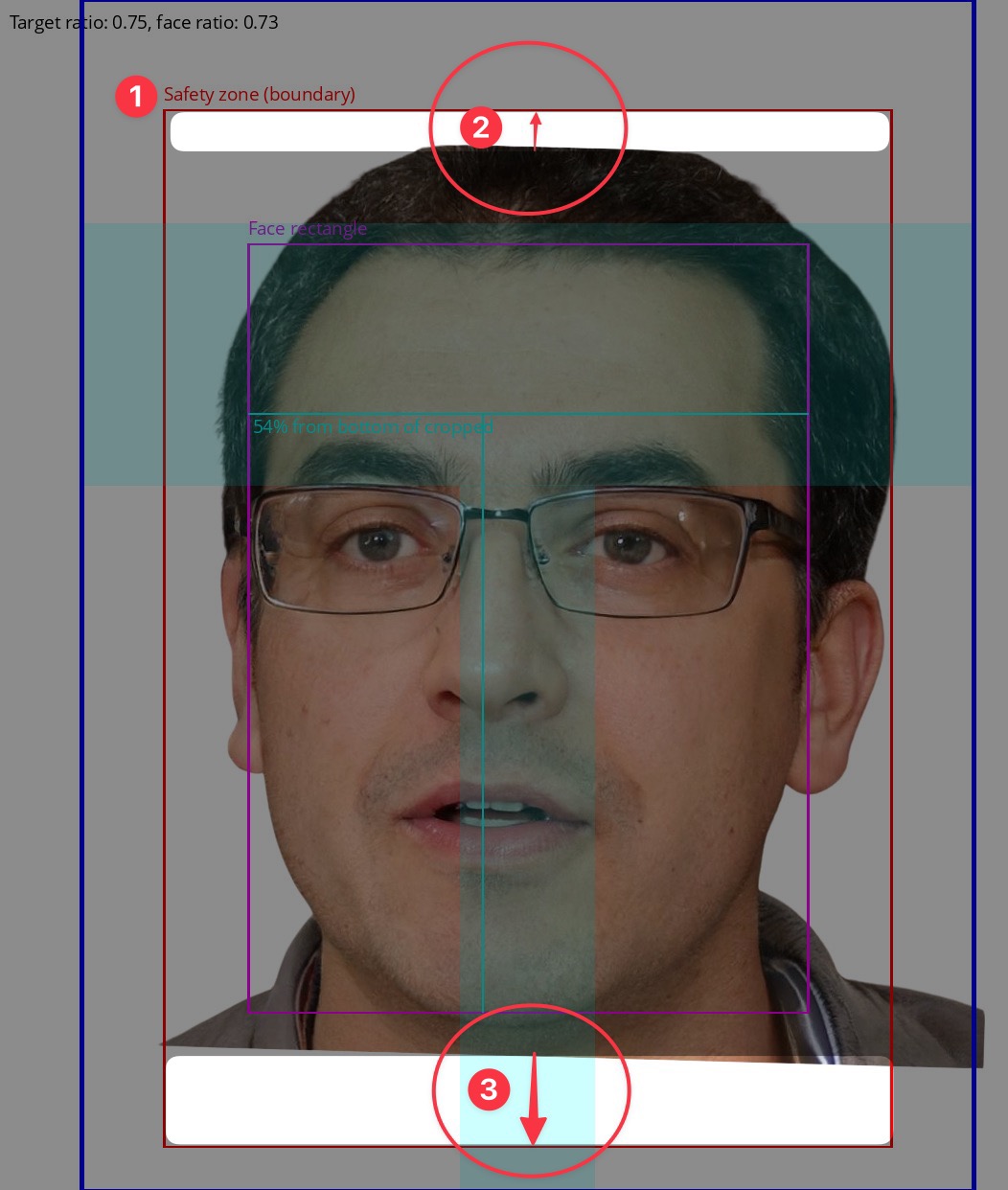 Rang 1: Mit knapp 42% ist der Randabstand der häufigste Ablehnungsgrund. Dieser wird bei insgesamt 3% der Uploads als unzureichend eingestuft. Ist der Abstand zum Rand zu gering, kann das Bild nicht schön zugeschnitten werden und es entstehen Lücken, meist unterhalb vom Kinn oder durch abgeschnittene Frisuren. Dieses Problem tritt häufig bei bestehenden Passfotos auf. Photo Collect definiert eine "Safety Zone" rund um das Gesicht, die auf jeden Fall mit Bildinhalt gefüllt sein muss.